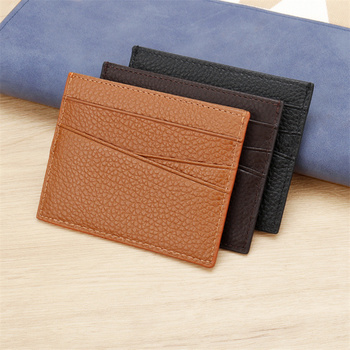Lychee-גרגר Cowhide כרטיס עור מינימליסטי ארנקים לגברים & נשים